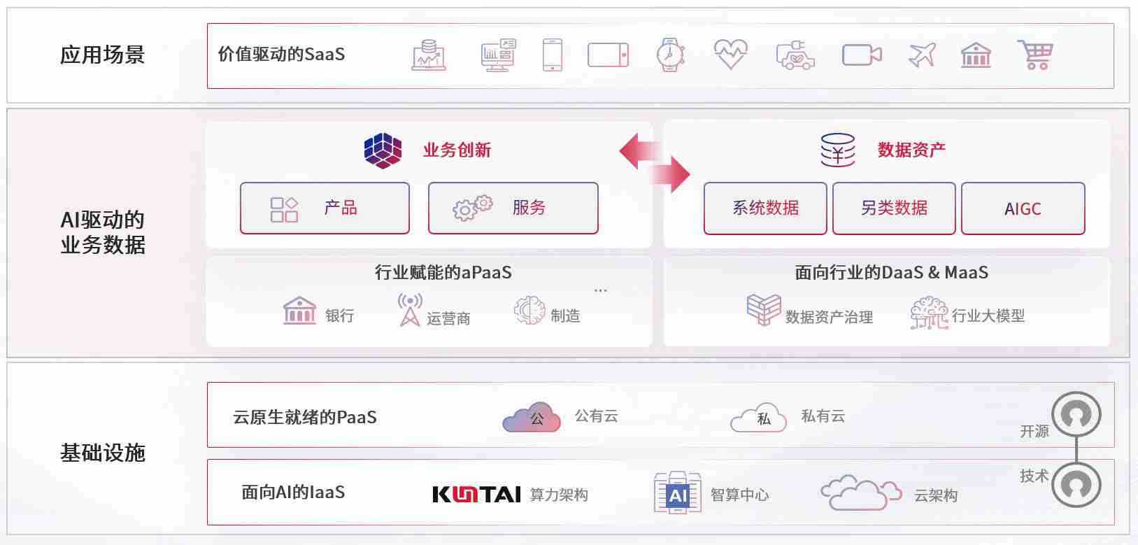 数字时代,,,围绕企业数字化转型的关键要素,,,,988钱包数码开创性的提出数云融合战略和技术体系框架,,,着力在云原生、、、数字原生、、、AI原生和信创产业上架构产品和服务能力,,,,为处在不同数字化转型阶段的快消零售、、汽车、、、金融、、、、医疗、、、、政企、、教育、、运营商等行业客户提供泛在的敏捷IT能力和融合的数据驱动能力,,构建跨界融合创新的数字业务场景和新业务模式,,,助力企业级客户建立面向未来的核心能力和竞争优势,,全面推动社会的数字化、、、智能化转型升级。。